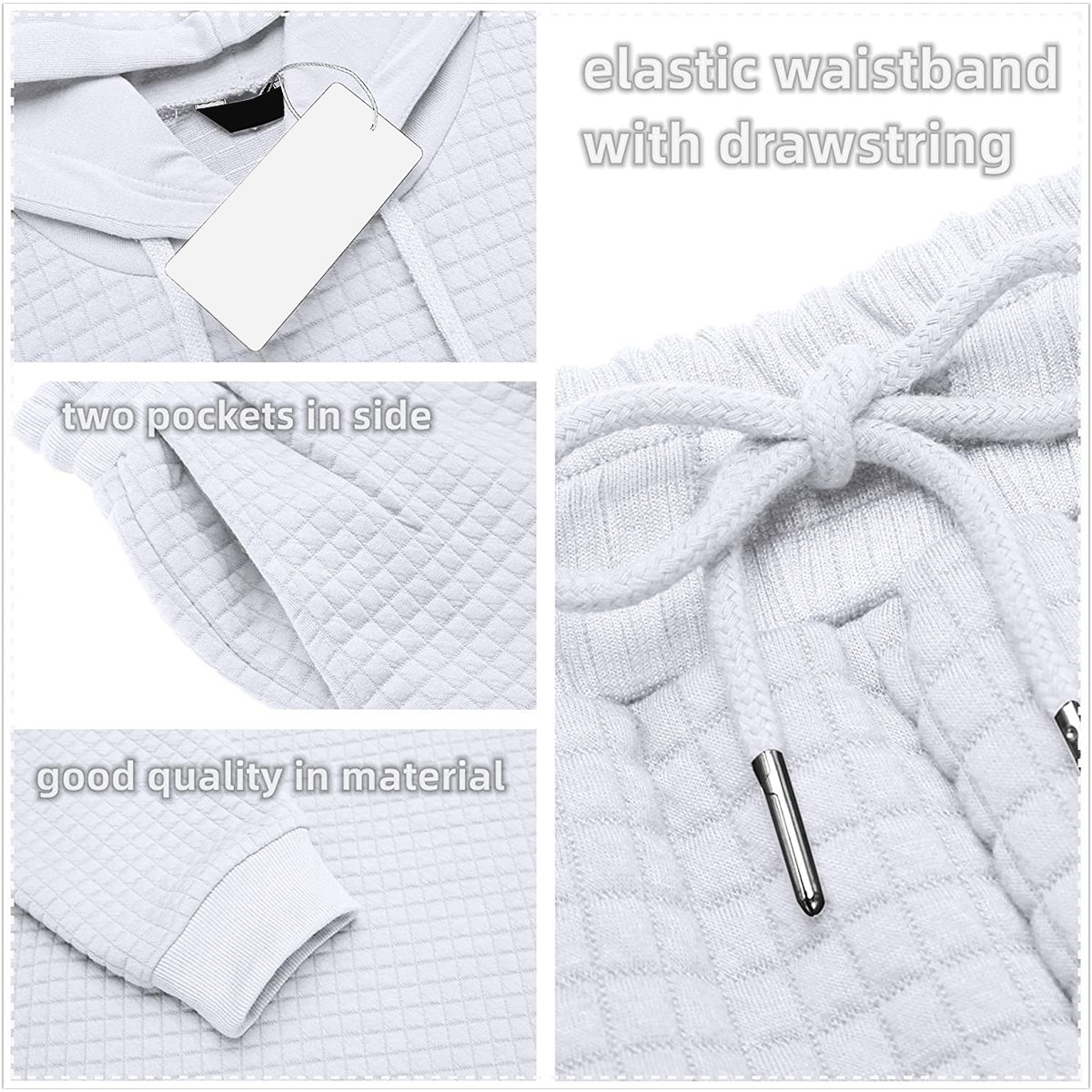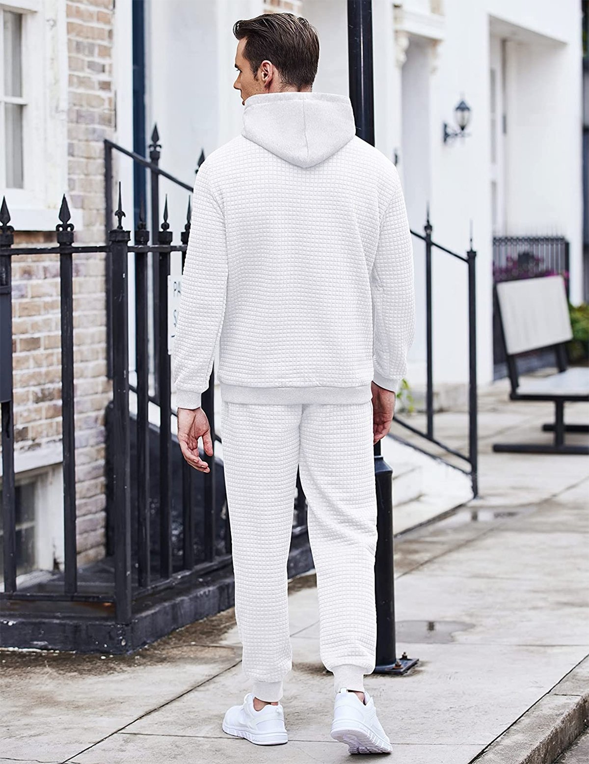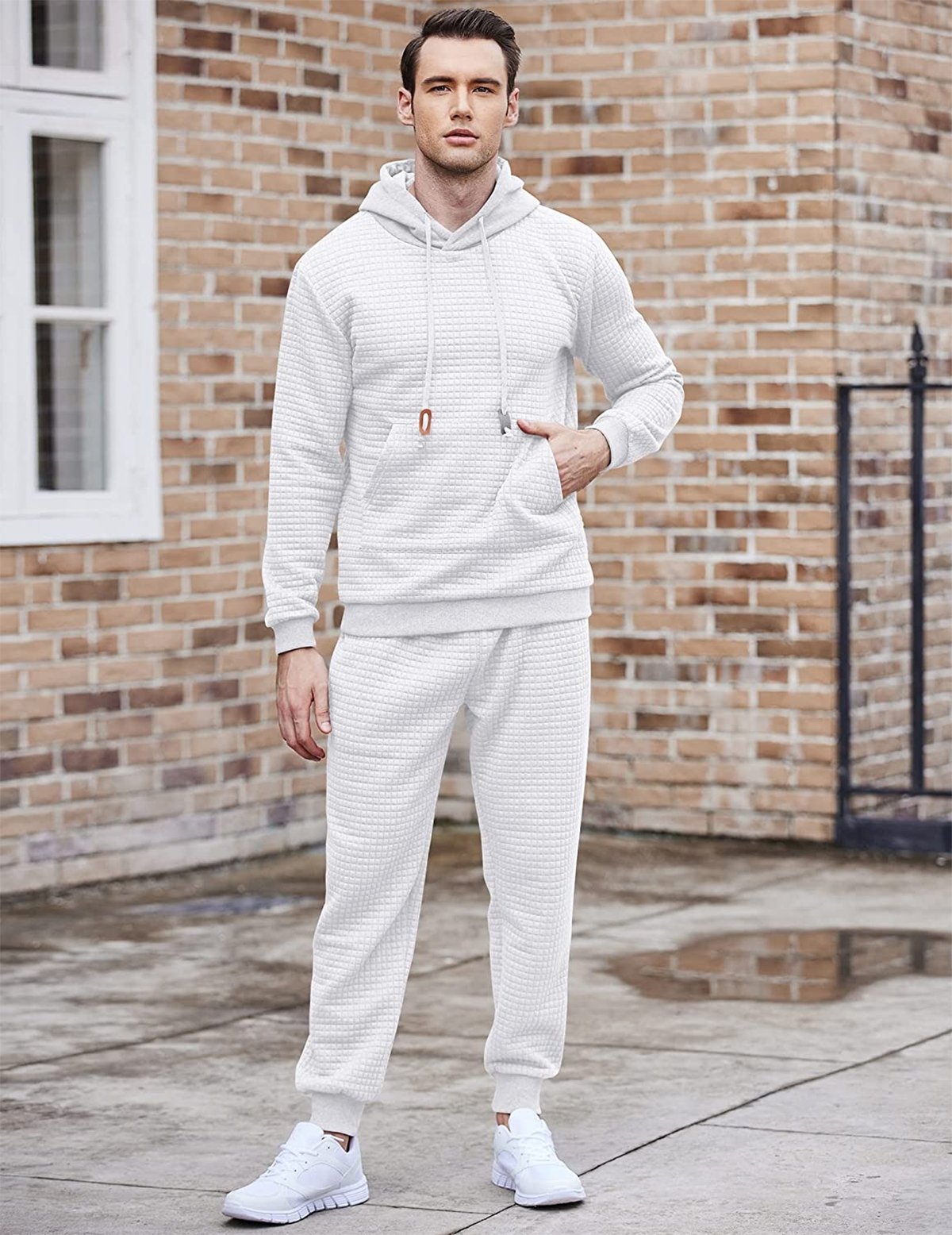 - Features:The men's jogging set contain a variety of fashion elements?plaid jacquard, solid pattern, drawstring hooded pullover with a kangaroo pokcet. long pants with adjustable drawstrings, 2 side pockets and 1 rear pocket,which allow you to bring small things like keys, phone, wallet, etc.